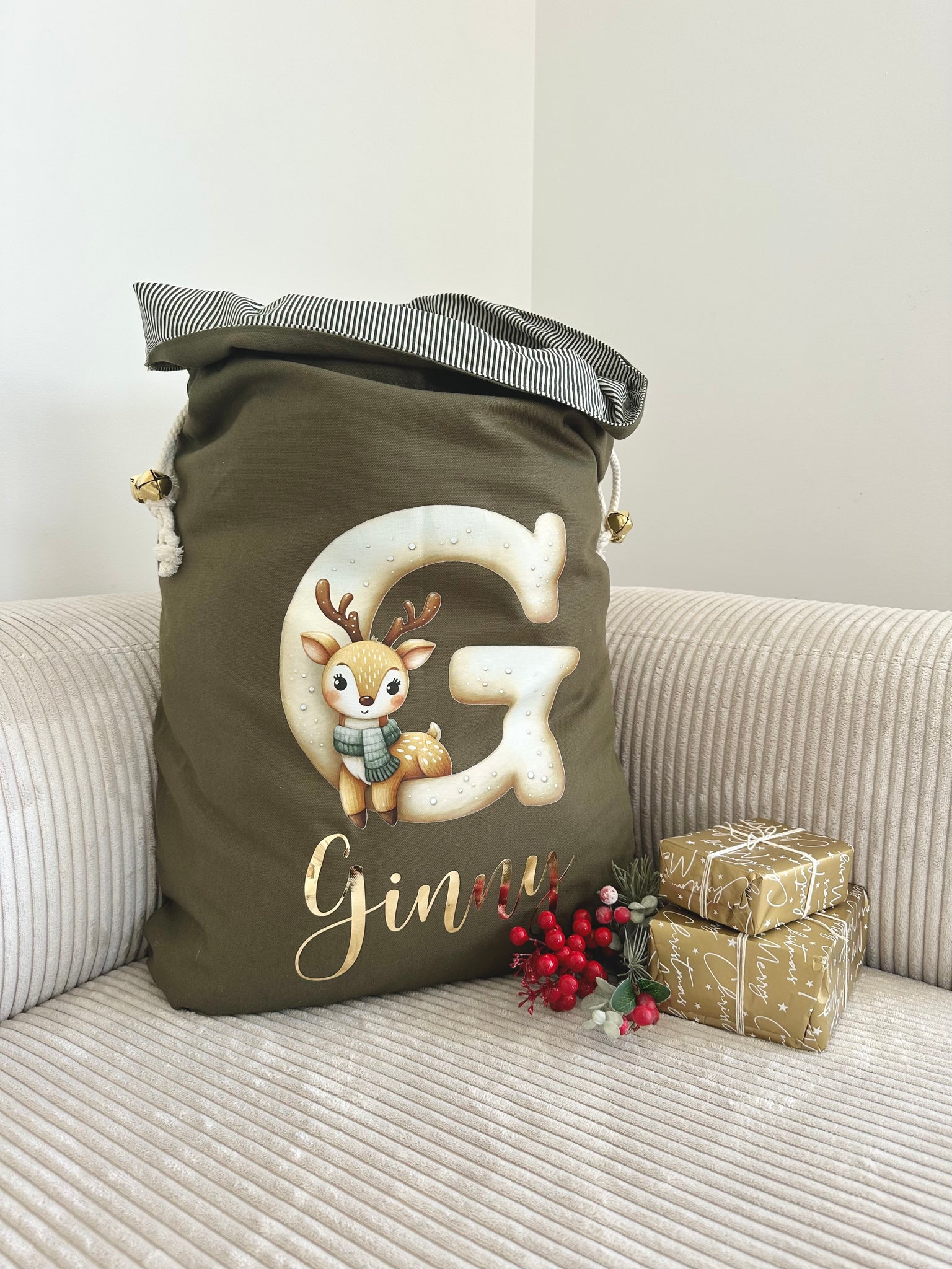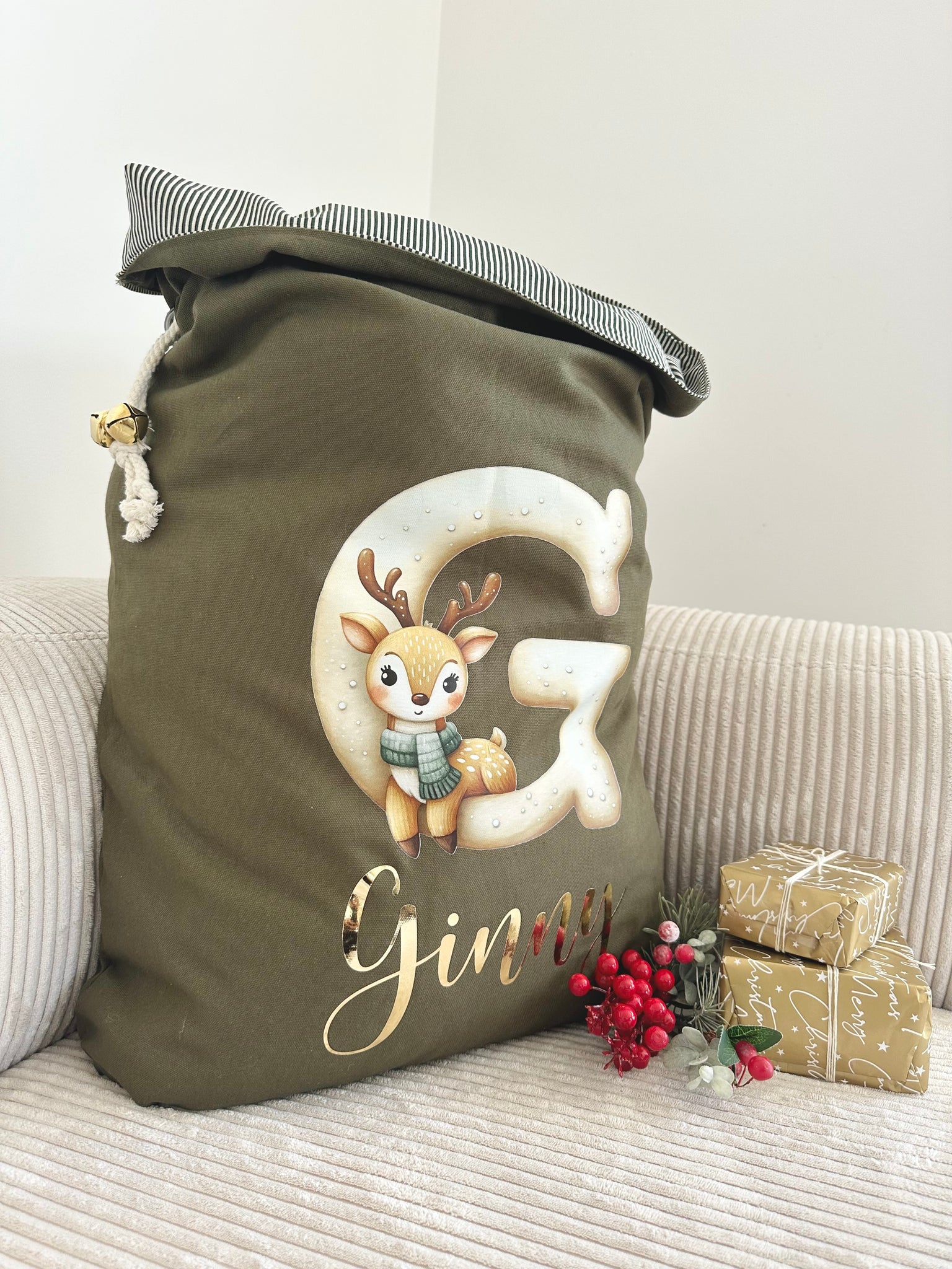 Personalised santa sack // Green christmas sack