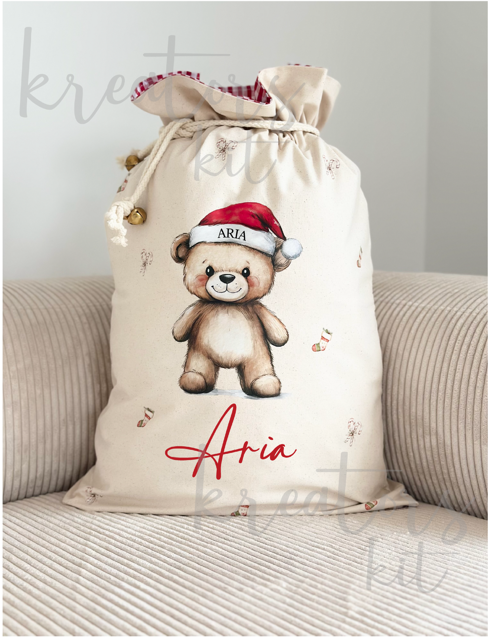 • Load image into Gallery viewer, Personalised christmas sack // Christmas brown bear