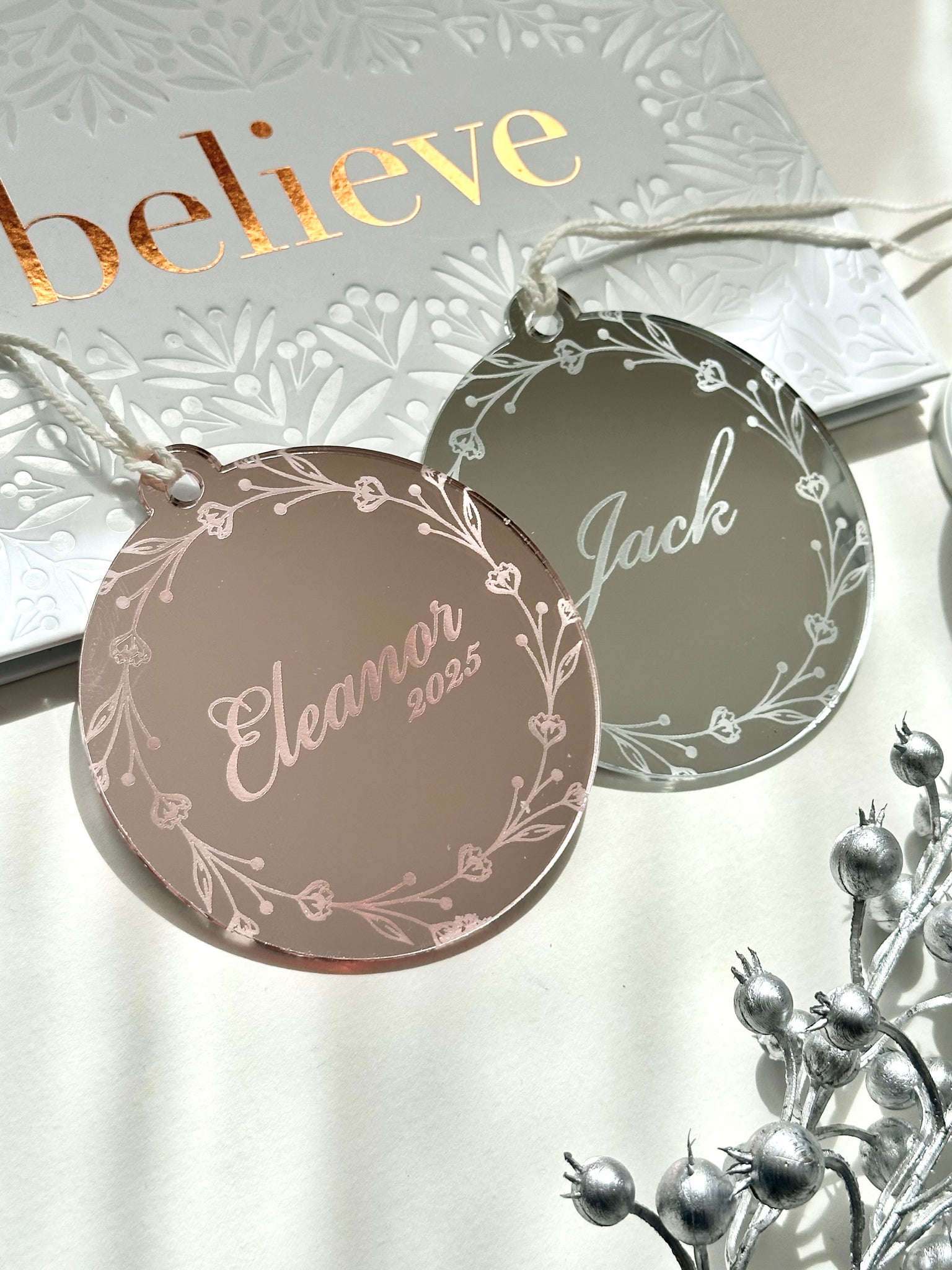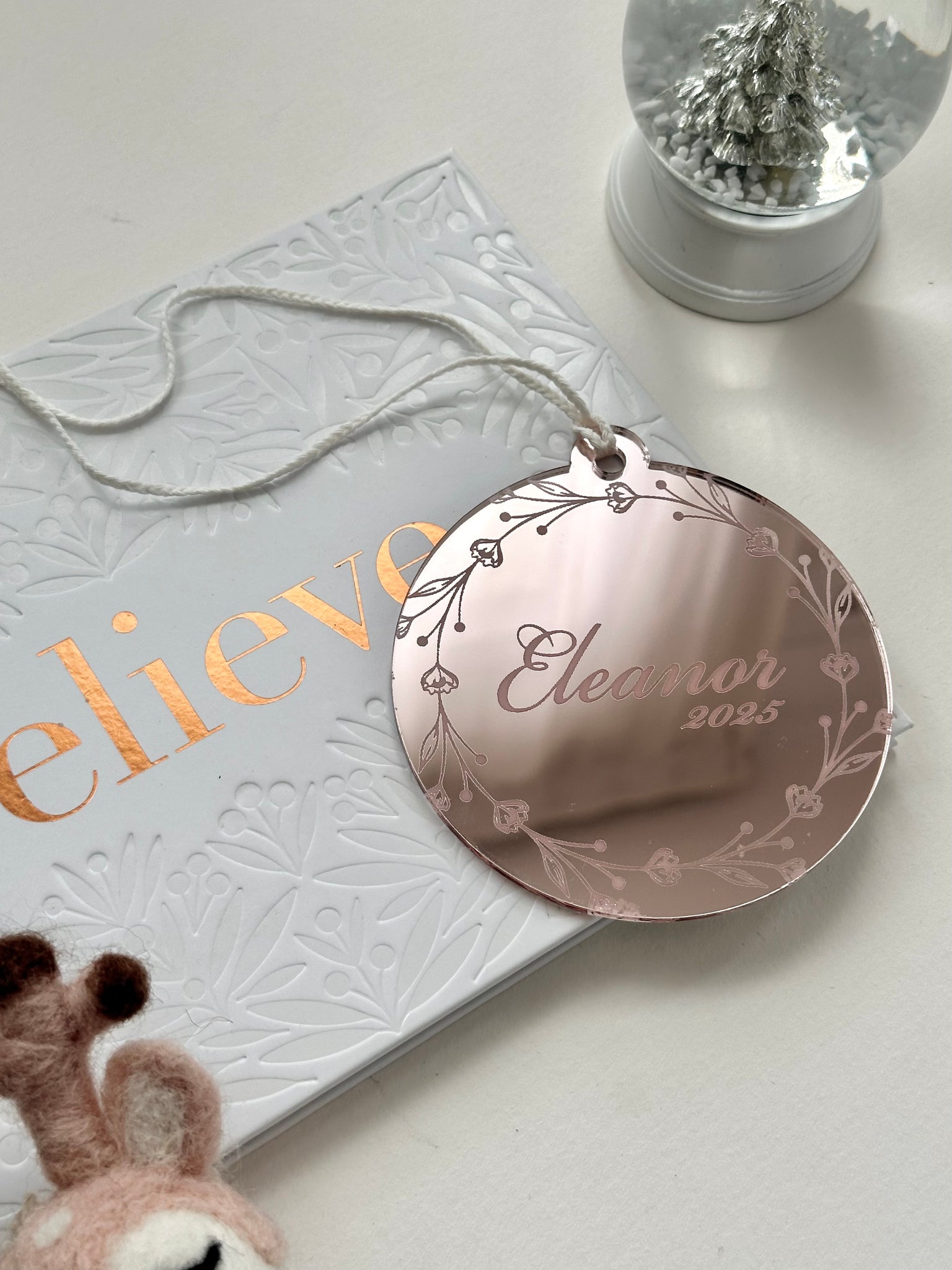 Celebrate Christmas in style with this beautiful and personalised Christmas Ornament. This ornament is a great gift for a loved one and a keepsake for years to come.