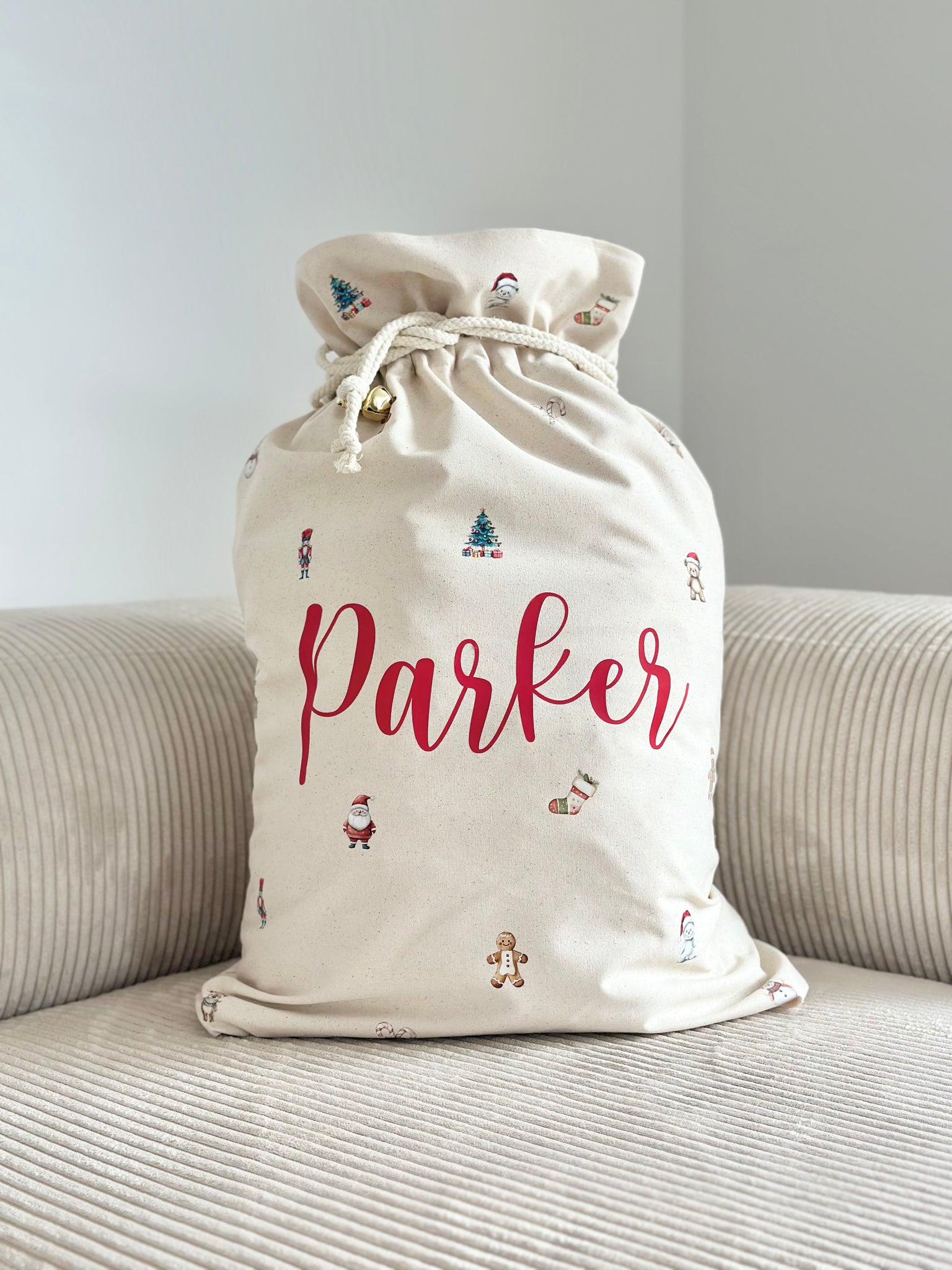 Personalise handmade Santa Sack for you and your loved ones this Christmas.